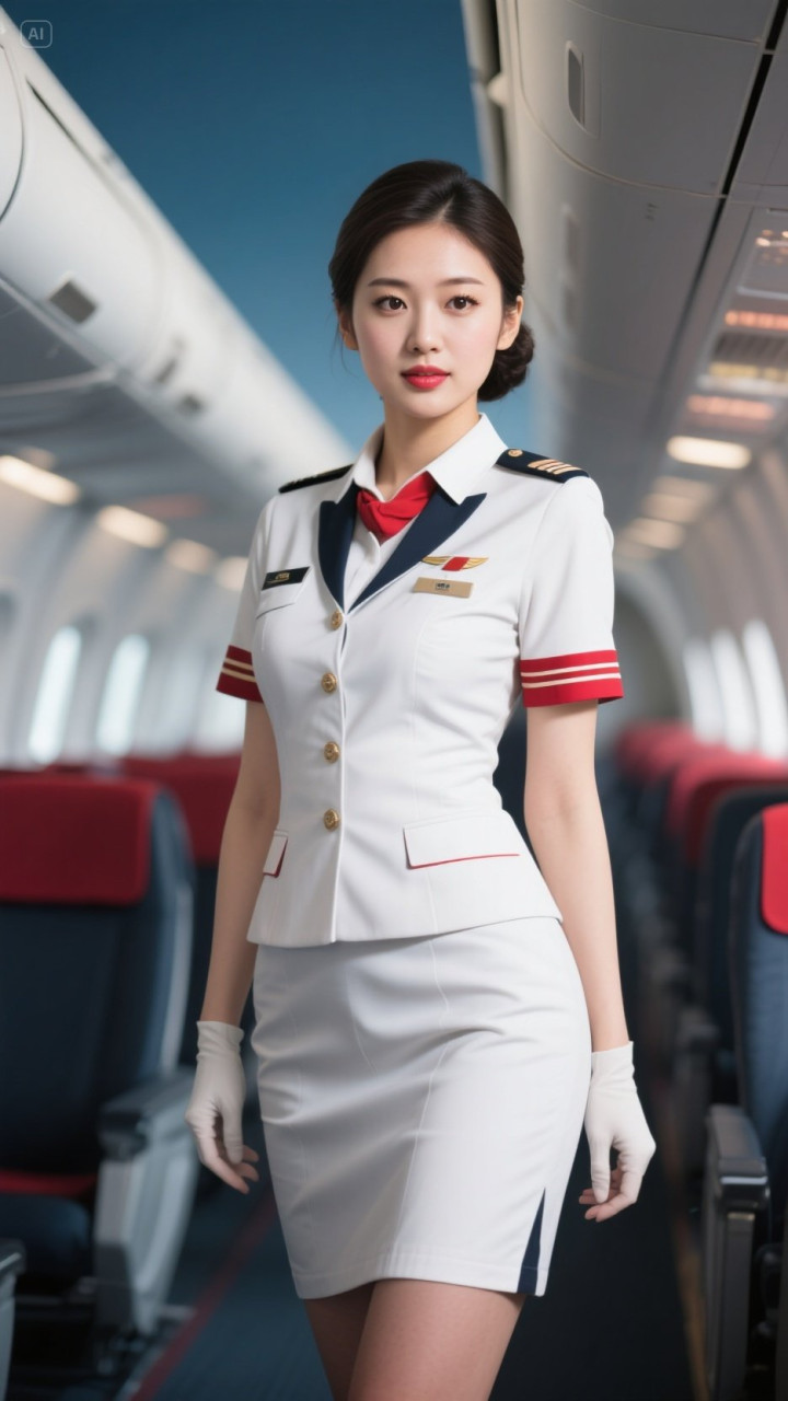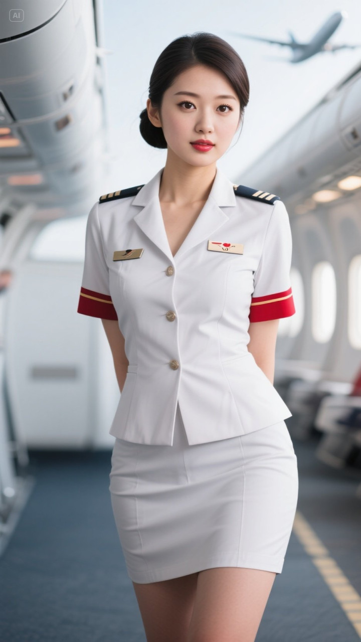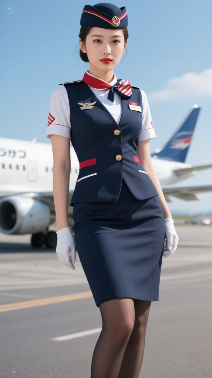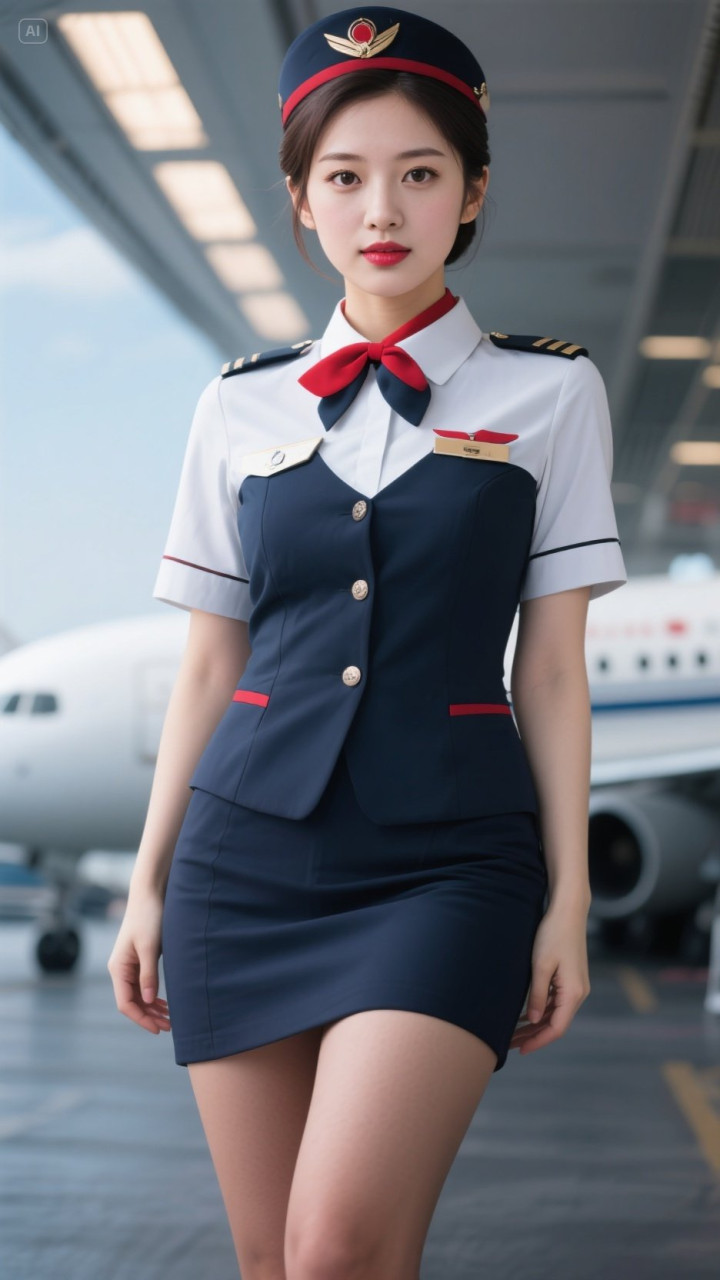空乘颜值天花板! 制服包裹的完美曲线, 红唇大眼太绝了