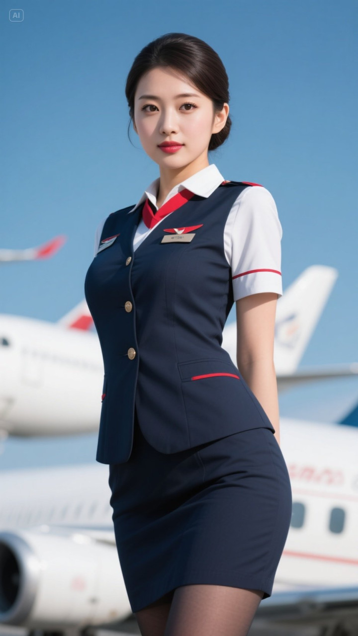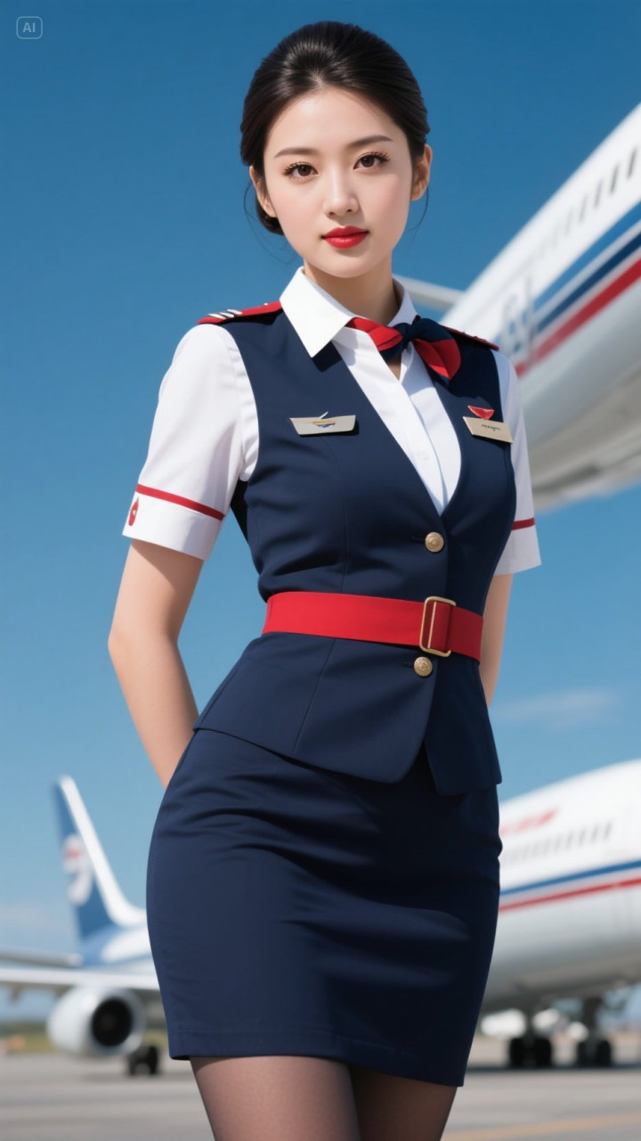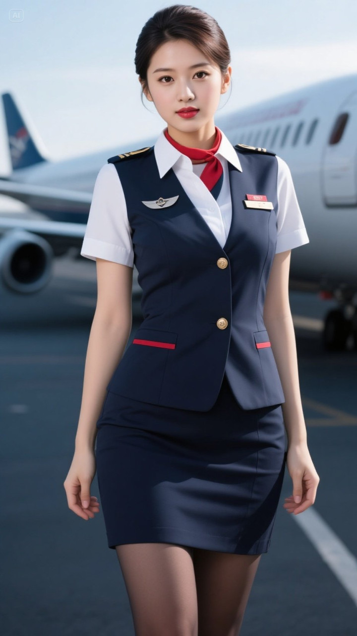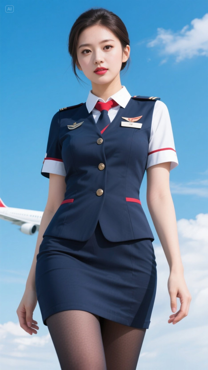 > 空乘颜值天花板! 制服包裹的完美曲线, 红唇大眼太绝了